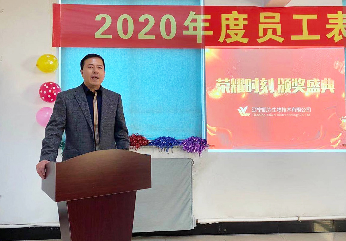 2021年1月9日,遼寧凱為生物技術(shù)有限公司2020年員工表彰大會(huì)于公司總部會(huì)議室成功召開,公司各級(jí)領(lǐng)導(dǎo)及全體員工應(yīng)邀參會(huì)。表彰大會(huì)首先由公司總經(jīng)理王鐵良致2021年新年賀詞,隨后分別頒發(fā)了生產(chǎn)部優(yōu)秀員工獎(jiǎng)、六年貢獻(xiàn)獎(jiǎng)、十年貢獻(xiàn)獎(jiǎng)和行政優(yōu)秀員工獎(jiǎng)四個(gè)獎(jiǎng)項(xiàng)。