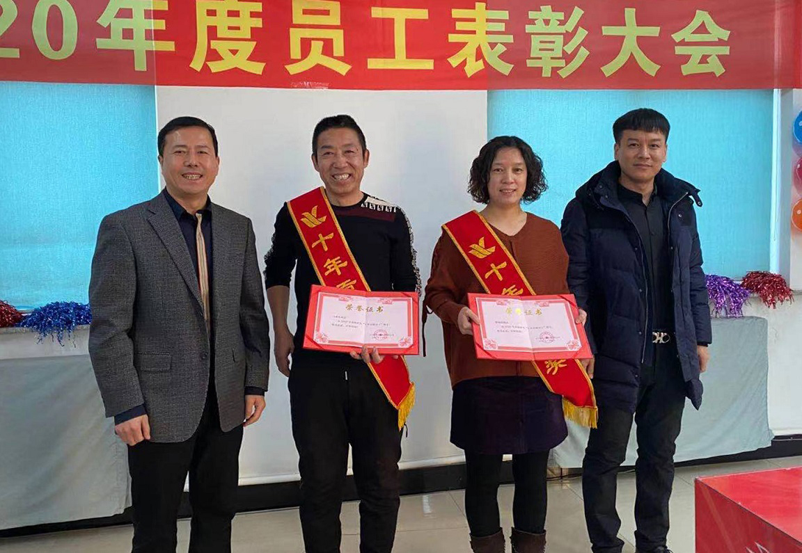 閆希東、薛曉娟獲得2020年度十年貢獻(xiàn)獎(jiǎng),十年的堅(jiān)守不渝,十年的默默耕作,他們把最美好的青春韶華賦予了我們?yōu)橹餐瑠^斗的事業(yè),十年如一日他們時(shí)刻心系企業(yè)的憂患,與企業(yè)同風(fēng)雨共命運(yùn),正是因?yàn)樗麄兊母冻鰟P為的今天才如此絢麗。公司總經(jīng)理王鐵良與銷售部經(jīng)理趙福寬為獲獎(jiǎng)?wù)哳C發(fā)榮譽(yù)證書。